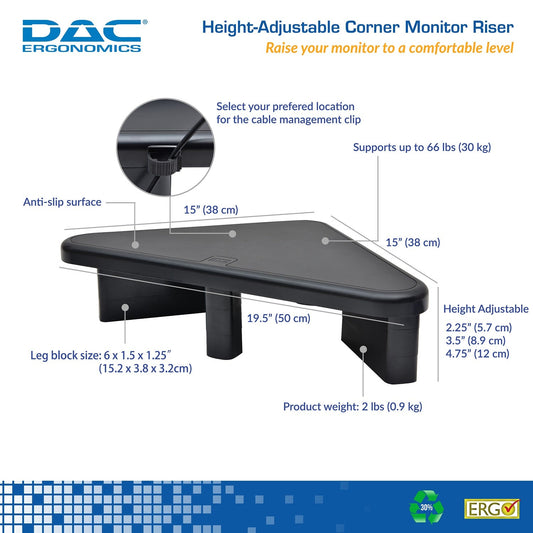 DAC® Stax MP-197 Height Adjustable Corner Monitor Riser, Black