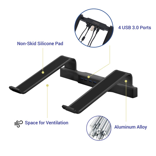 DAC® MP-220 Non-Skid Laptop Stand With 4-Port USB 3.0 Hub, Black